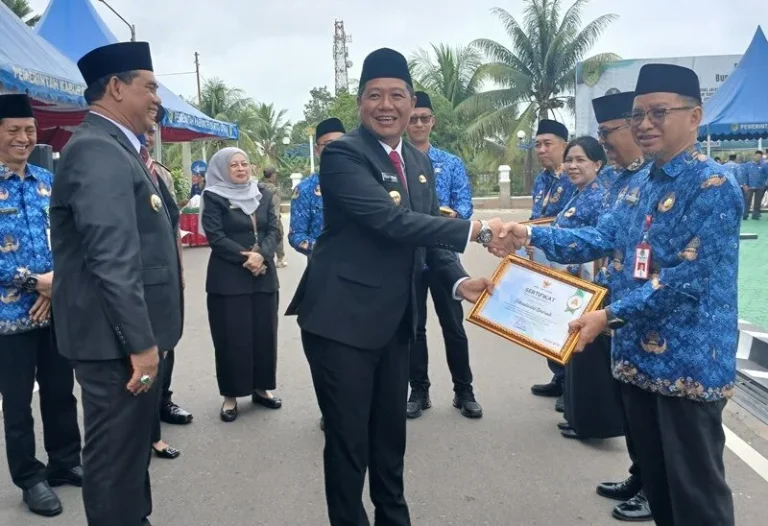 PROBORNEO– Pemerintah Kabupaten Barito Utara memberikan apresiasi tinggi kepada 10 perangkat daerah dan unit kerja yang meraih Indeks BerAKHLAK tertinggi berdasarkan Survei Budaya Kerja dan Evaluasi Implementasi BerAKHLAK Tahun 2025. Penghargaan tersebut diserahkan langsung oleh Bupati Barito Utara H. Shahaluddin usai pelaksanaan upacara peringatan Hari Ulang Tahun Korpri ke-54 di halaman Kantor Bupati, Senin (1/12/2025).